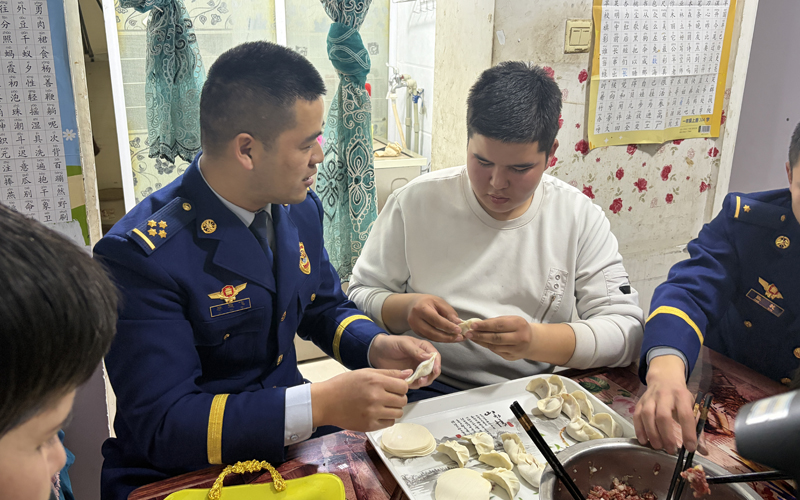 贴春联、挂灯笼、包饺子……屋内,温馨气息扑面而来,李运飞和队员们与吐尔逊一家人开心的唠家常、做年夜饭。还仔细检查屋内的电器线路,查看电线是否有老化、破损的情况。“吐大哥,这里的电线有点老化了,我给你换一根新的,这样用电就安全多了。”李运飞一边动手更换电线,一边叮嘱道,“过年期间,用电、用气都要格外小心,要是有什么问题,你随时给我打电话。”